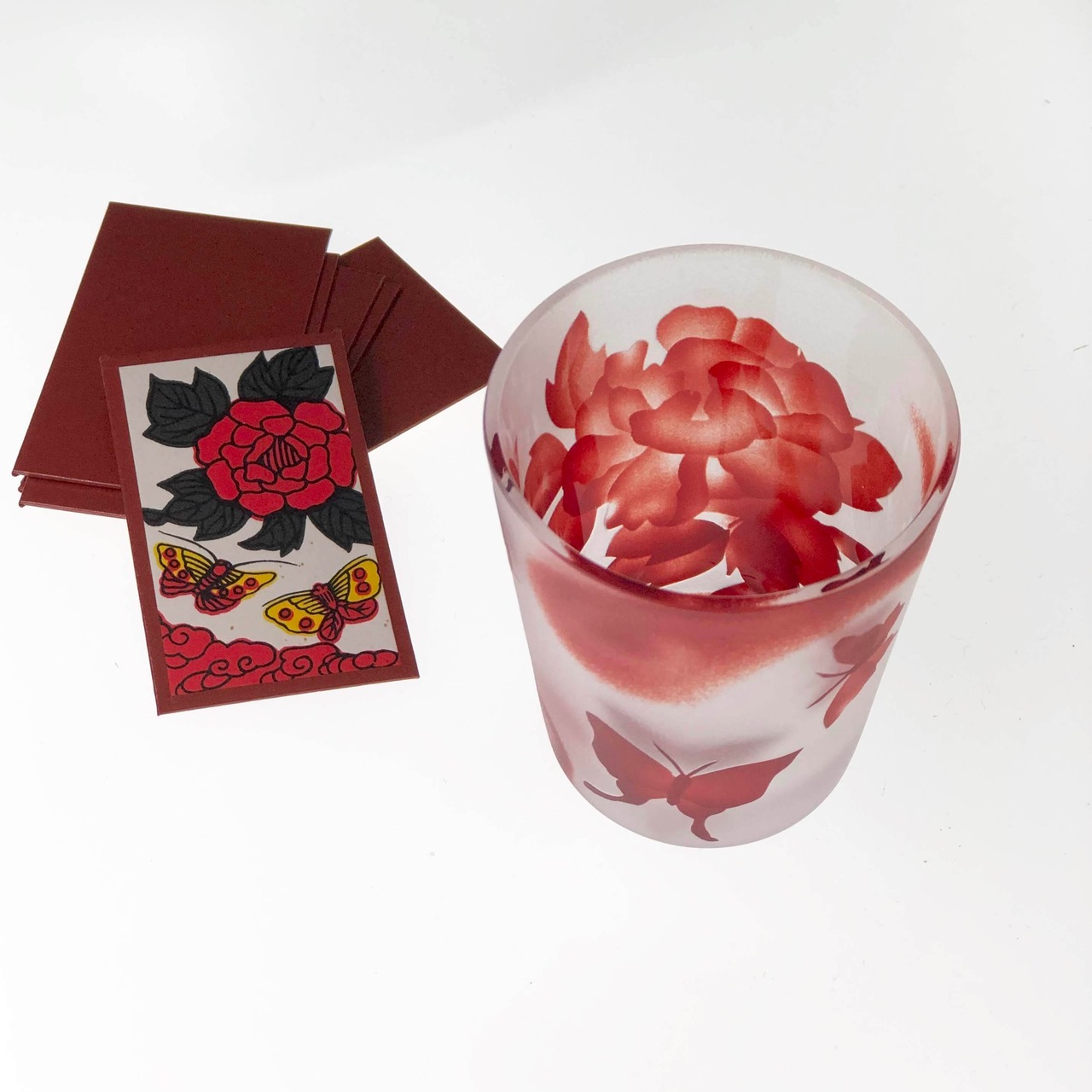 【和ギフト】花札硝子 / 蝶に牡丹 〜花札のガラスおちょこ ぐいのみ shot glass