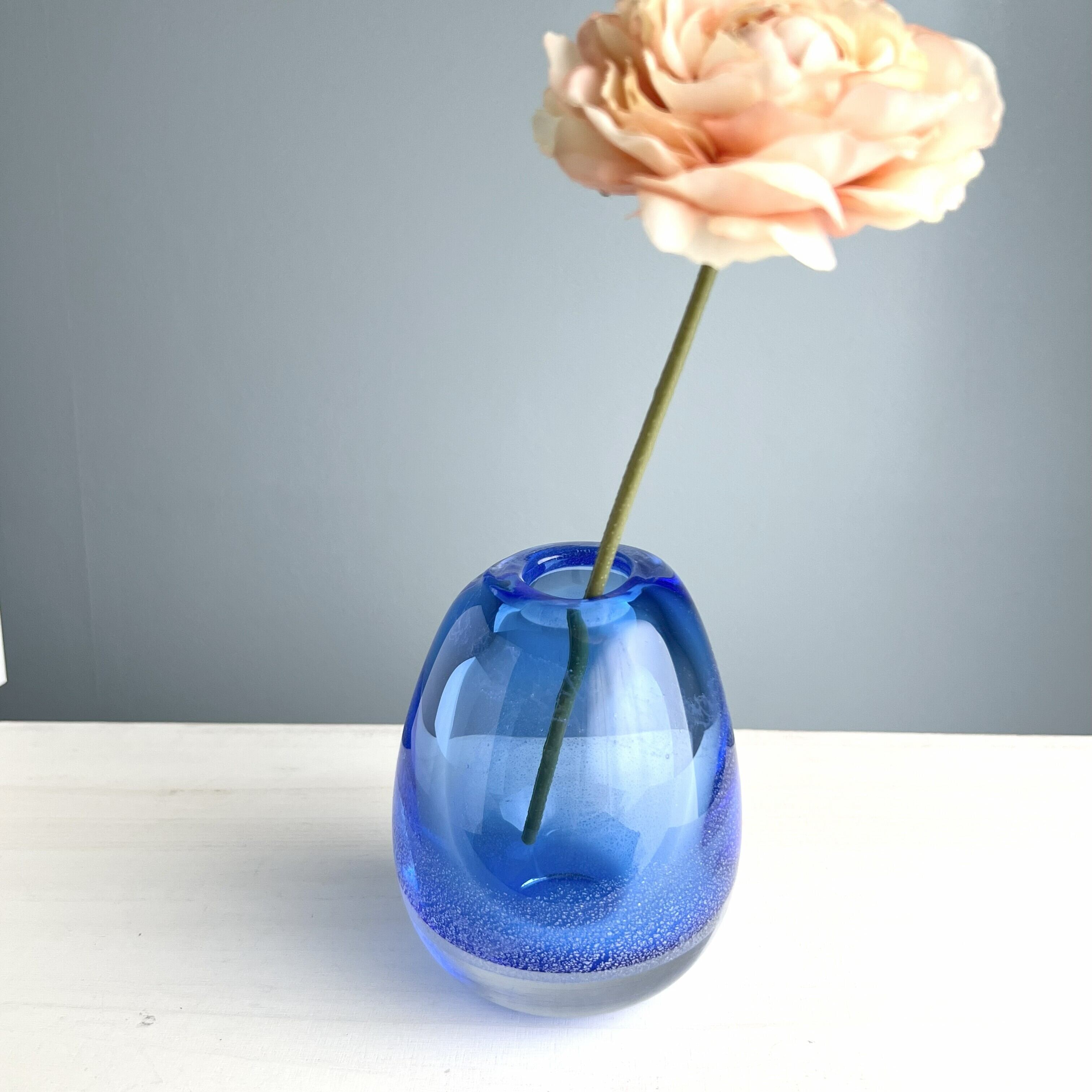 青と銀の美しい立ち泡が、神秘的な青龍をイメージさせる一輪挿し花瓶です。