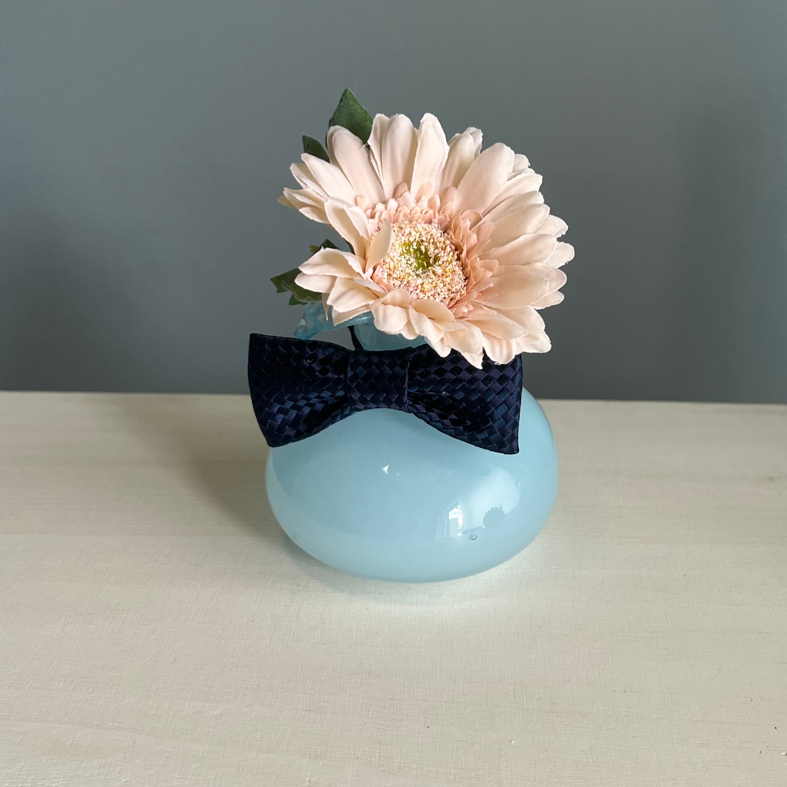 水色のガラスをシャツに見立てて、お花がお顔になるような感じで作りました。