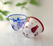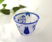 【猫のギフト】ねこと鳥かご ガラスの酒器 おちょこ ぐい吞み / 江戸硝子使用 cat glassware shotglass
