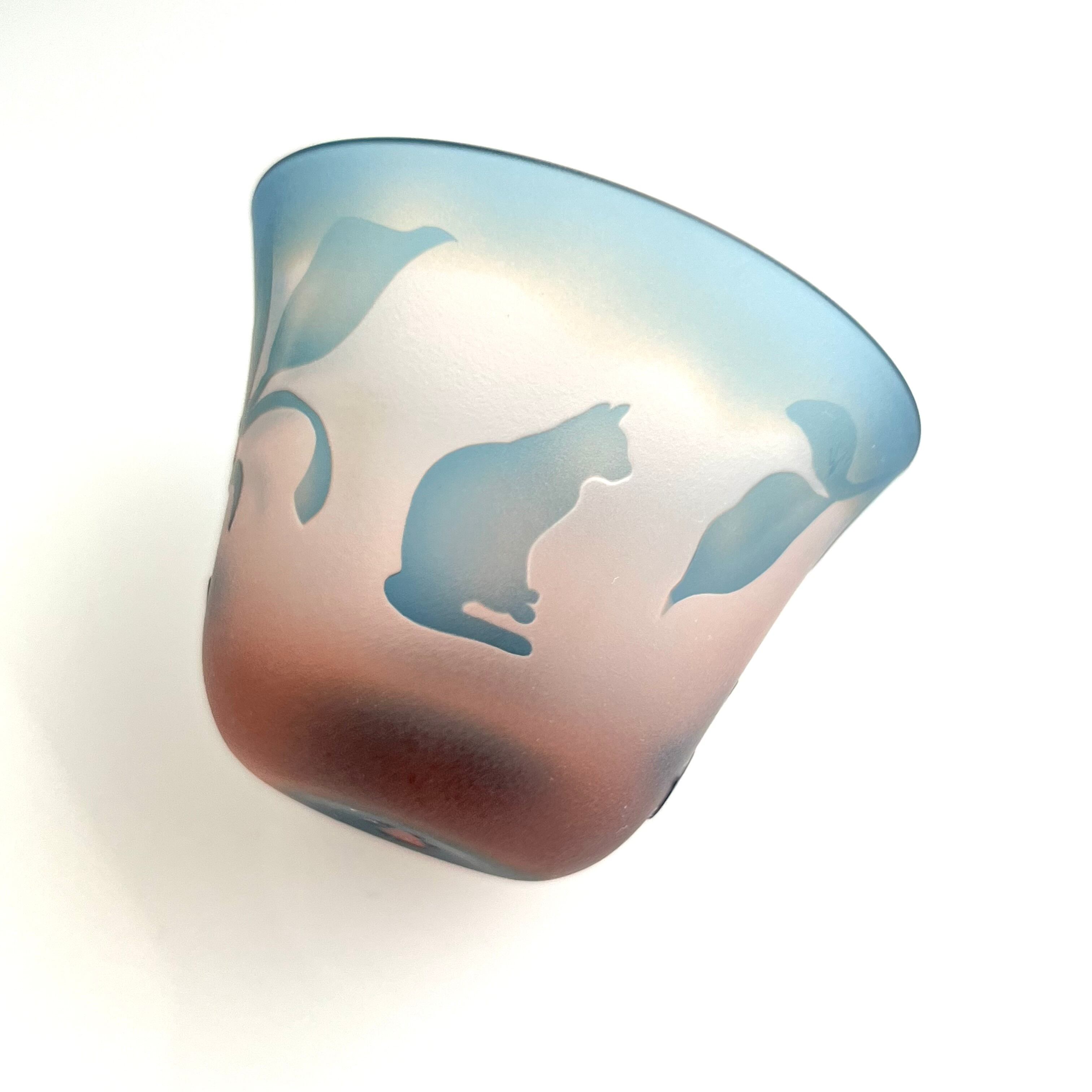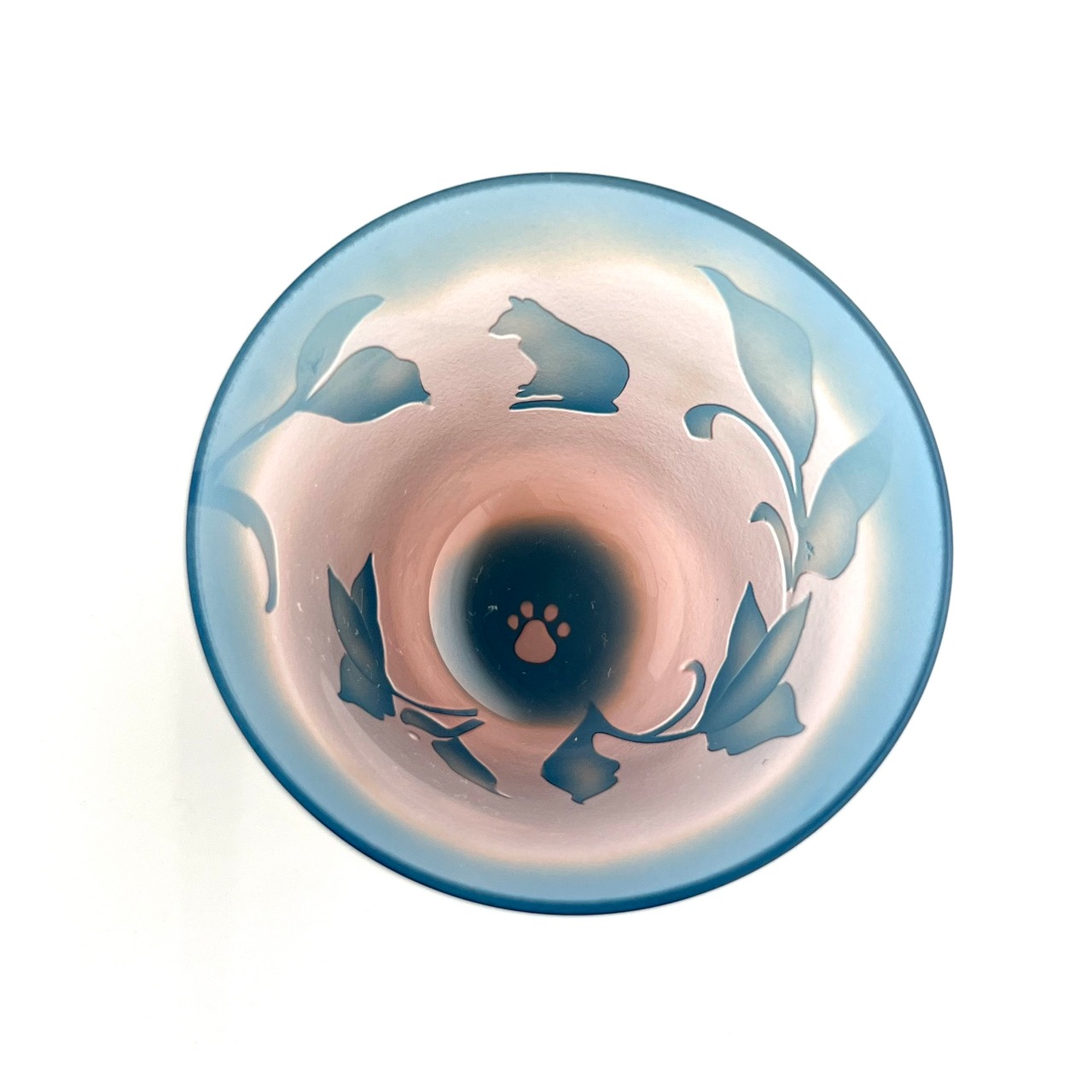 【猫ギフト】ねこ&宝相華 ガラスのおちょこ 酒器 ぐい吞み 青藤桃色 mini cup cat& flower
