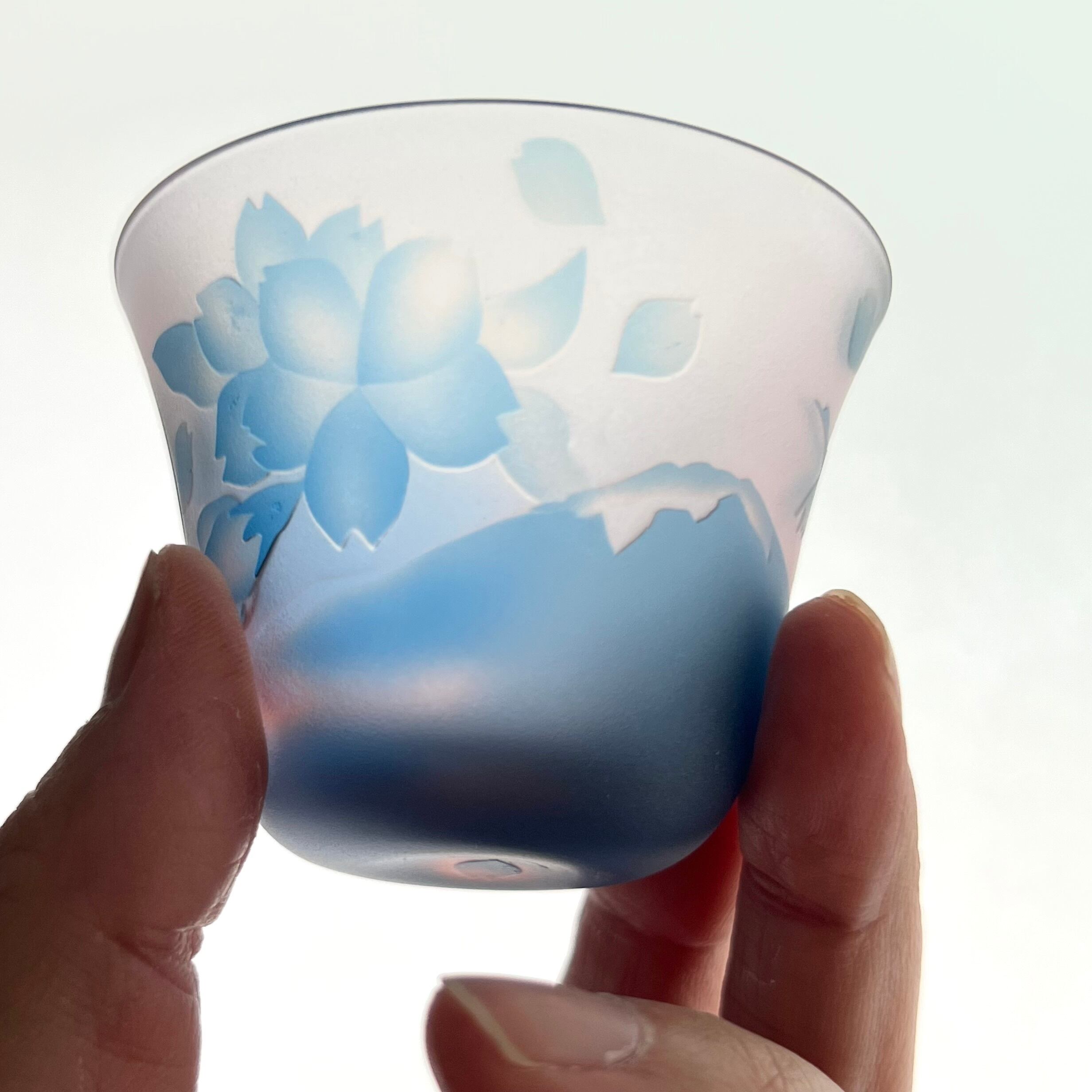 【和ギフト】日輪と桜富士 ガラスのおちょこ ぐい呑み sakura&Fujiyama sake glass