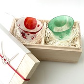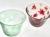 【和ギフト】もみじ 赤紅葉&青紅葉 ガラスのおちょこ ぐい呑み 【江戸硝子使用】(golden fish sake cups 1 pair)