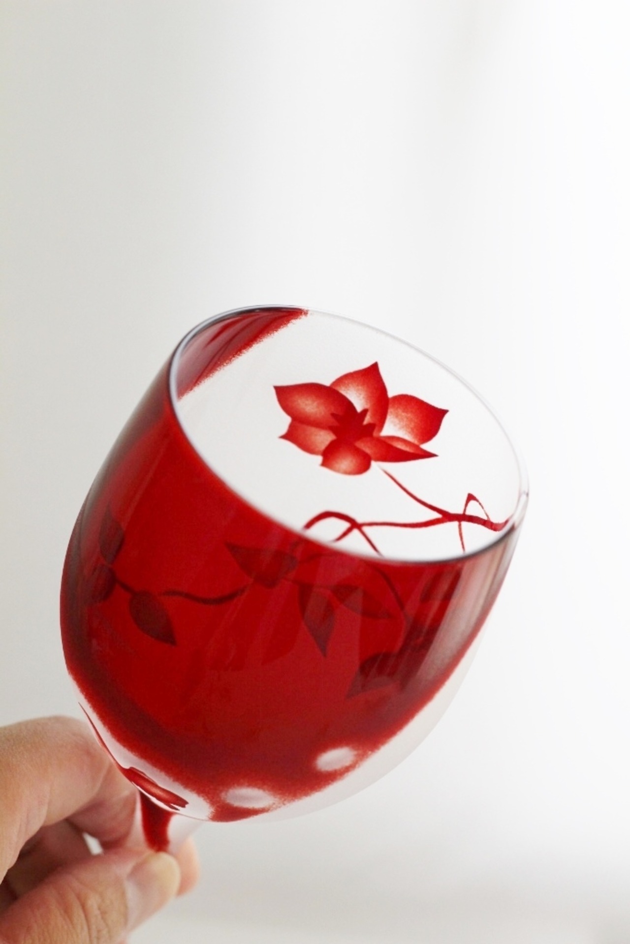 【江戸硝子ワイン】赤 花と金魚 ワイングラス クレマチス(The clematis wine glass )