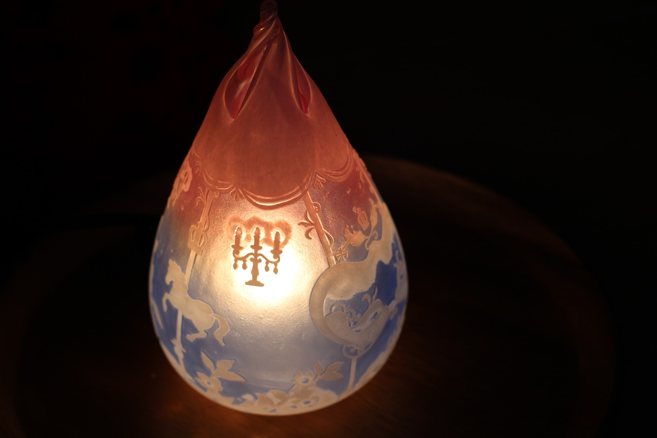 宙吹きグラスで作られたランプ。