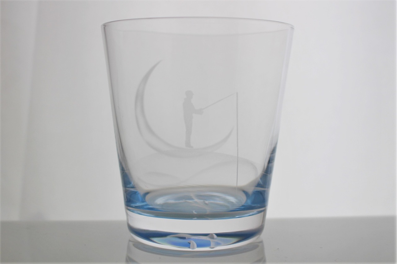 【釣り好きギフト】三日月夜のさかなつり 水色 コップ グラス 釣り好き 大漁記念