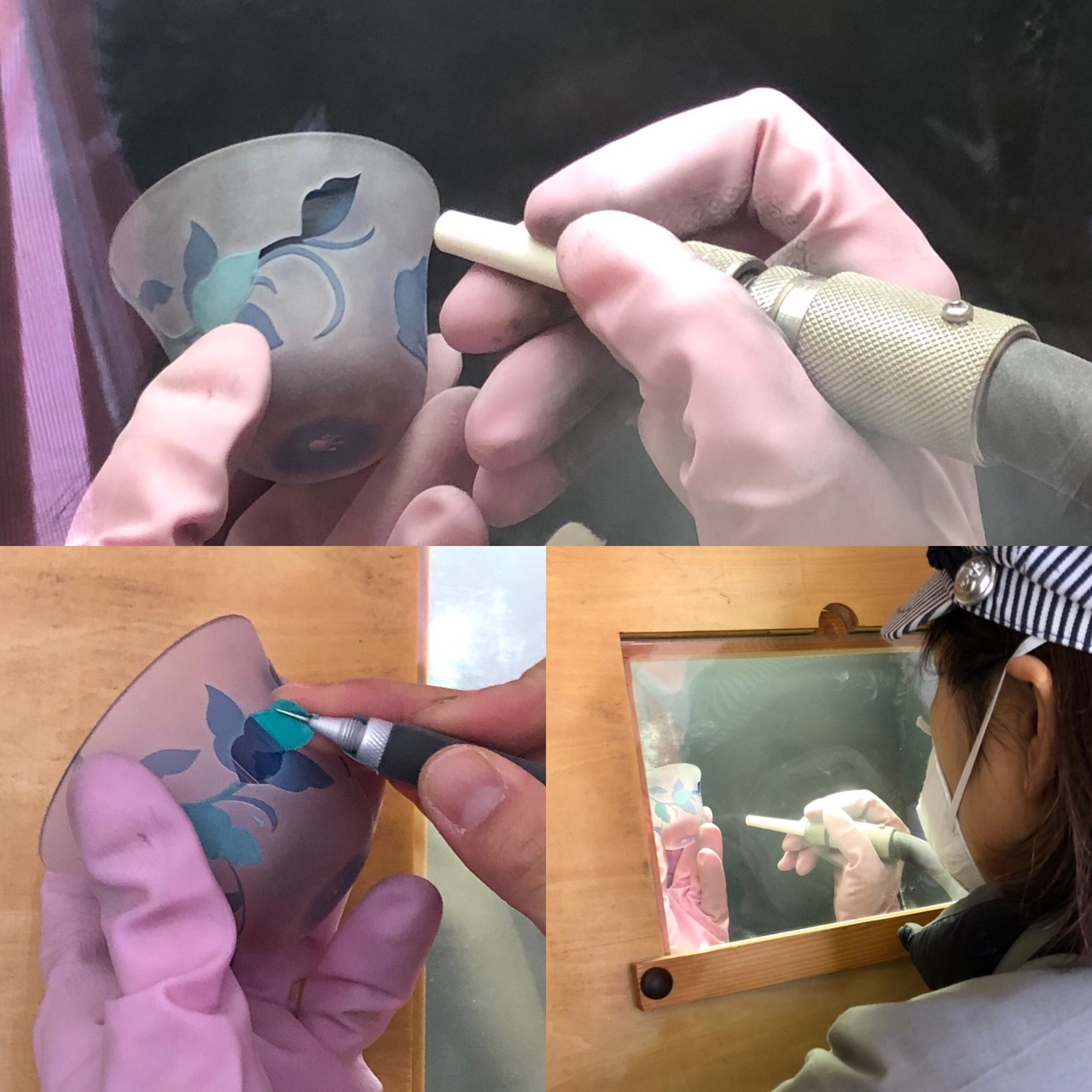ガラスの表面を削り落とすことで絵柄を出しているサンドブラストの彫刻工芸品です。
