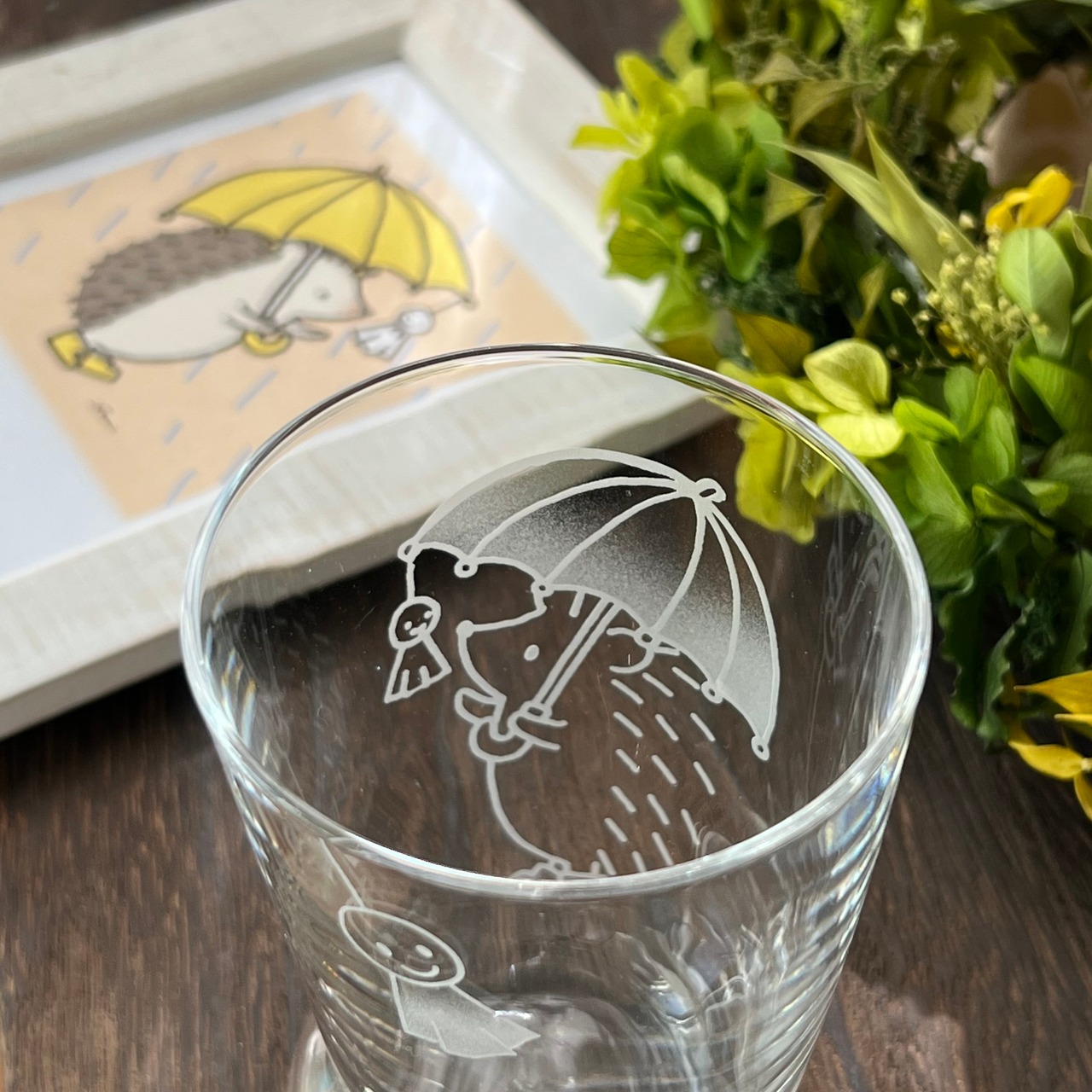 かわいいハリネズミのイラストで大人気のなみさんの作品をグラスにしました。