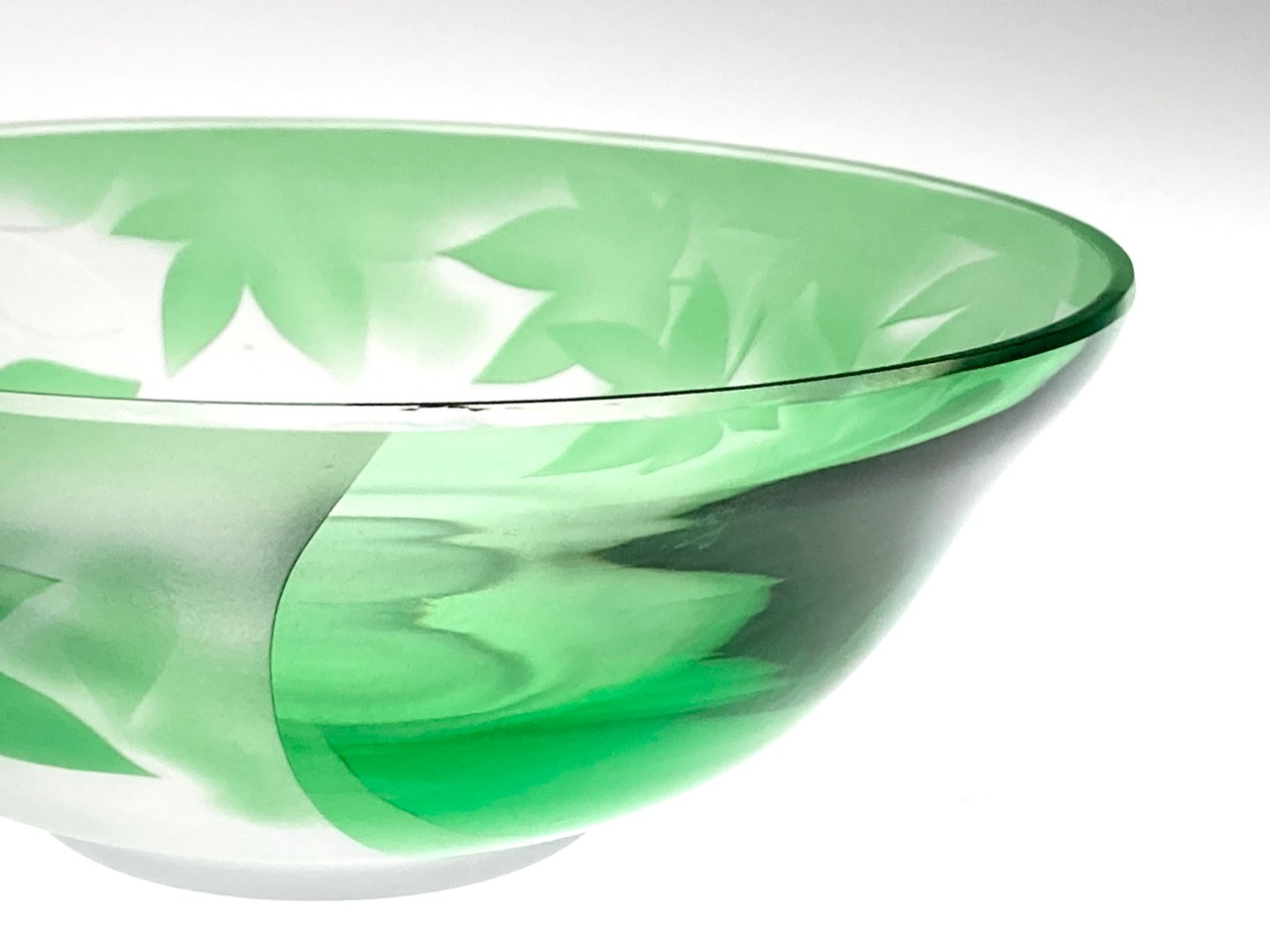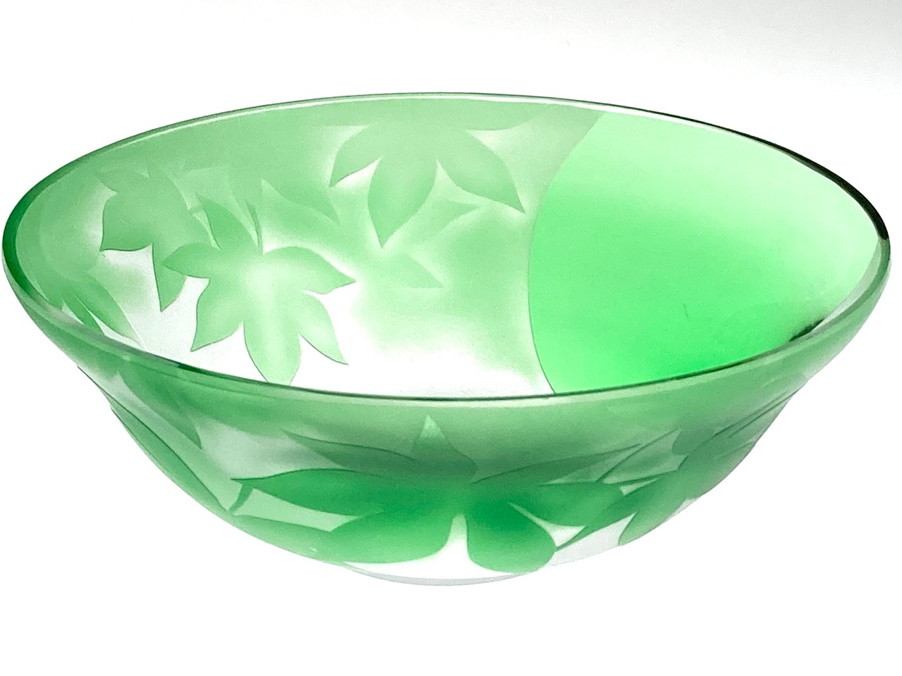 ガラスのお抹茶碗 紅葉 青紅葉 円 緑 江戸硝子